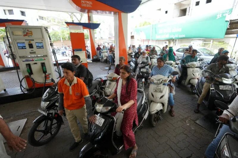 人们在印度艾哈迈达巴德一处加油站排队等待加油。新华社发